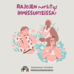Rajoista puhutaan paljon. Mitä ne tarkoittavat ihmissuhteissa? Voit tutkia omia rajojasi esimerkiksi seuraavien kysymysten avulla: Mikä tuntuu sinusta hyvältä ja mikä ei? Miten ... Lue lisää